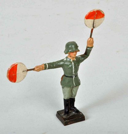 A sawdust and glue figure manufactured by the Company Durolin. Excellent paintwork carrying two direction finding indicators.
