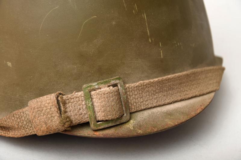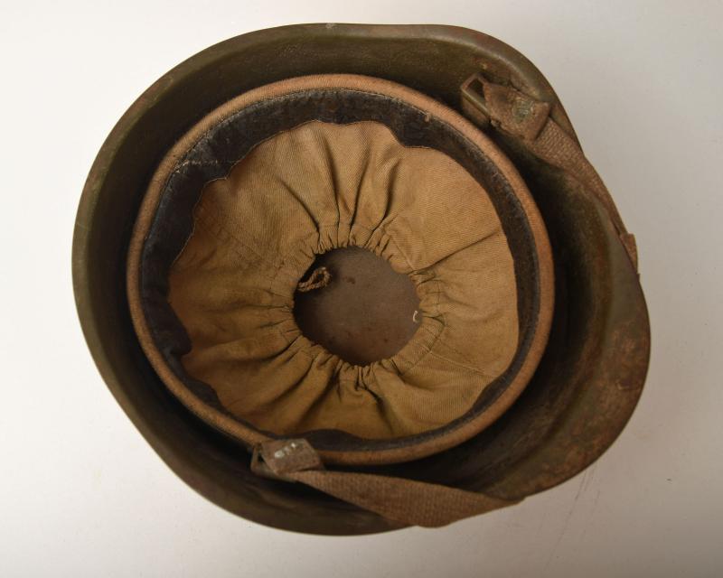 Nice condition with all the Russian original green paint remaining with some abrasions as can be seen by our web images. Complete with its mixture of Rexene and canvas liner and its webbing chinstrap. Very faint traces of its rectangular ink stamp in the inner rear skirt, the dates are difficult to read.