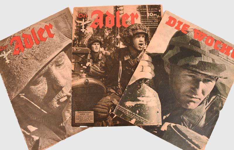 The magazine of the Luftwaffe, 3 examples. 6th July 1943 focusing on paratroopers. 8th August 1944 also on paratroopers. 1st March 1944 paratroopers using anti tank weapons.