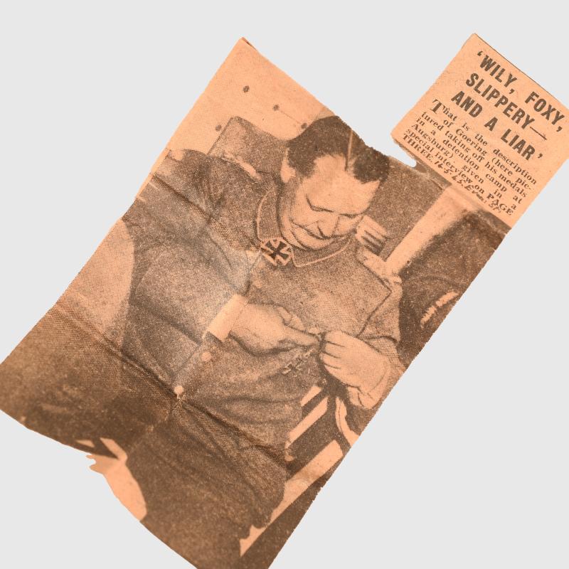 A good early non maker marked example retaining all its original finish. Flat construction, in its early type box, which at one stage had a silvered outline of the Iron Cross to the exterior lid, which unfortunately has been erased, also the push button opening catch has been removed. The artificial silk to the upper inner lid has a few rust spots. Within the box is a ‘16.5.1945’ dated cutting from the London Evening Standard showing Hermann Goering removing his medals on capture, we are not suggesting that this award has anything to do with Hermann Goering but has probably been used as a connection between the medal and the period of its obtaining by the original owner just after WWII.