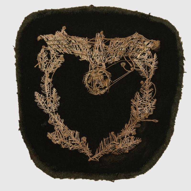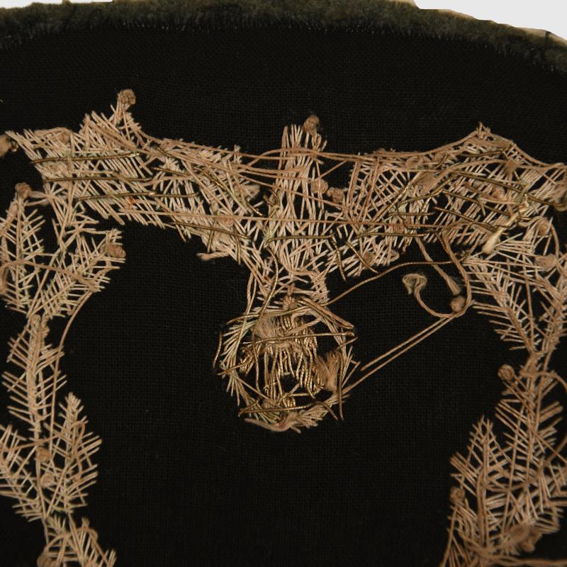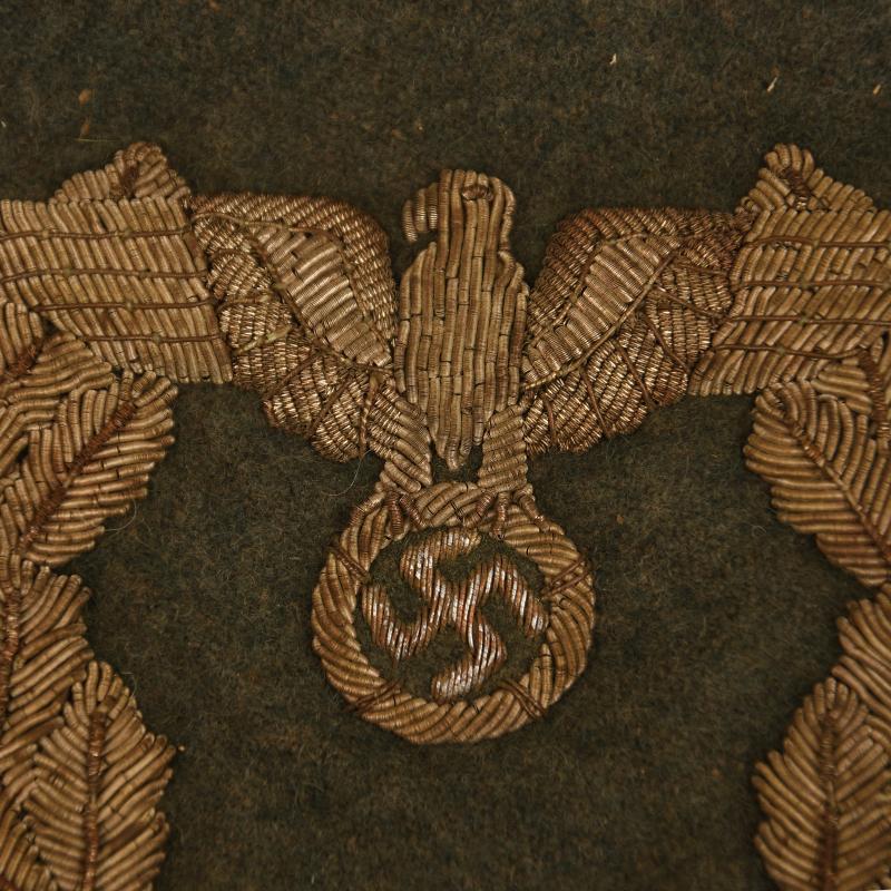 A beautifully embroidered silver on field section of insignia measuring 13 x 13 cm in size, large diplomatic style eagle above a wreath. These were worn on the field grey uniforms of junior officials and assistants at the Reichs Ministries.
