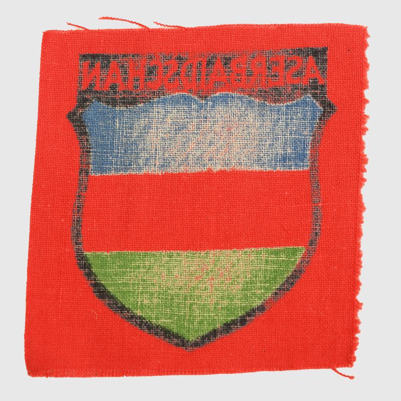 The printed version, cut from roll of an Aserbaidschan arm shield for personnel serving with the German forces in WWII.