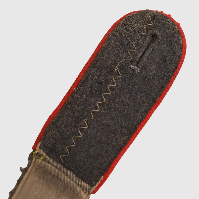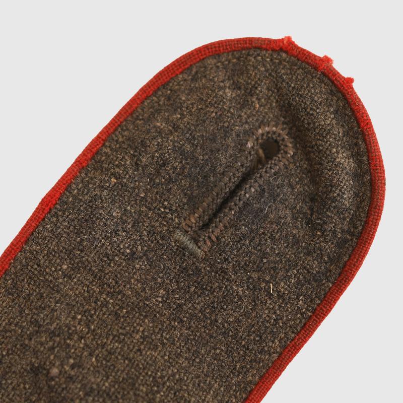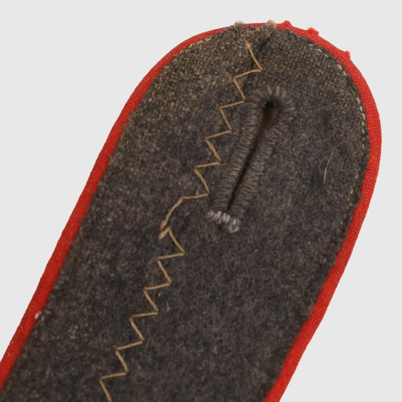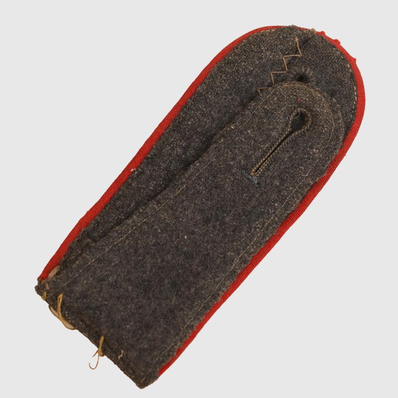 A single slip on shoulder board for an enlisted man in a Luftwaffe Flak Artillery unit, red silk piping Luftwaffe blue grey centre which has faded.