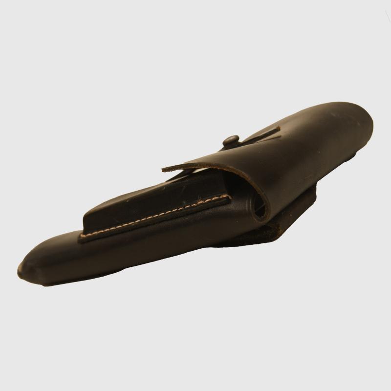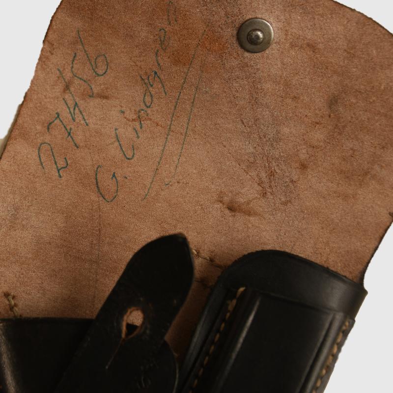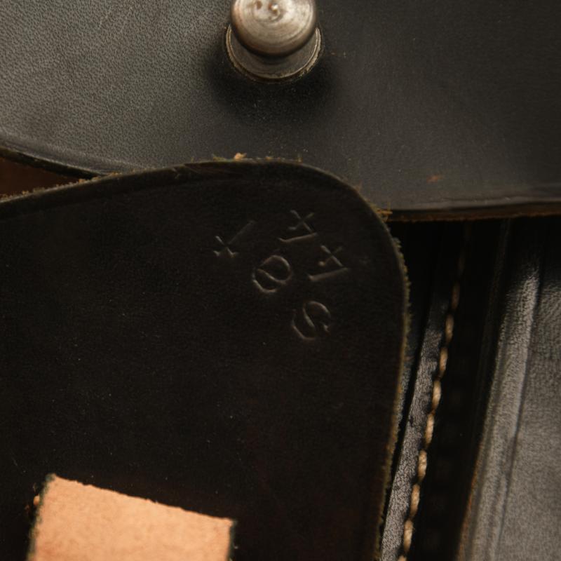 Three letter coded ‘SAT44’. Smooth black leather, white stitching immaculate. Single belt loop on the reverse side. The SAT44 is for the Company of Gustav Genschon. To the interior flap hand written is an owner’s name and a feldpost number which equates to the SS Prinz Eugen Division.