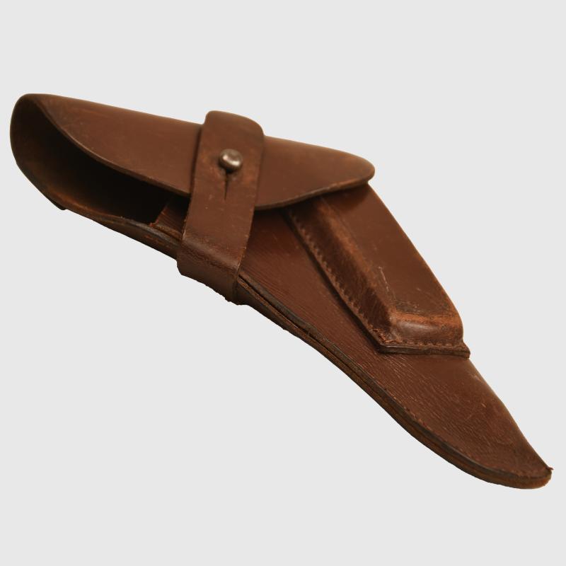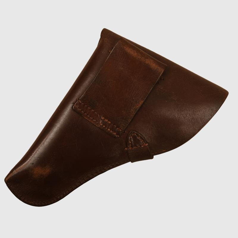 Extremely scarce good condition holster, nicely marked with the Kreigsmarine eagle and swastika acceptance stamp and its North Sea 4785 number just below the closing tab. Good brown colour. Good shape.
