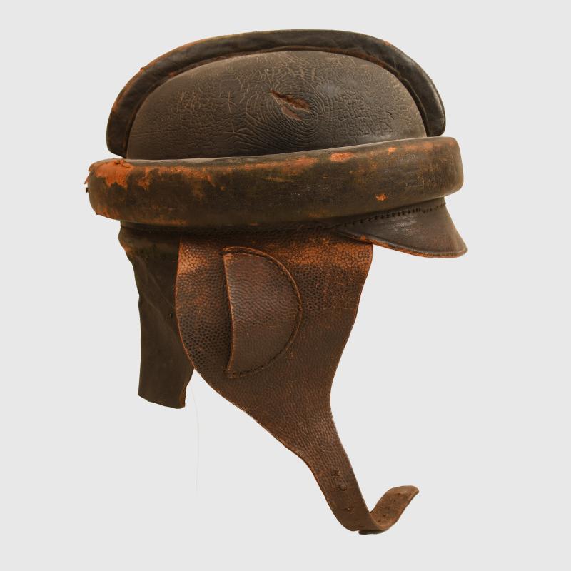 GERMAN WWI AVIATORS LEATHER FLYING HELMET AND PHOTOGRAPH.
