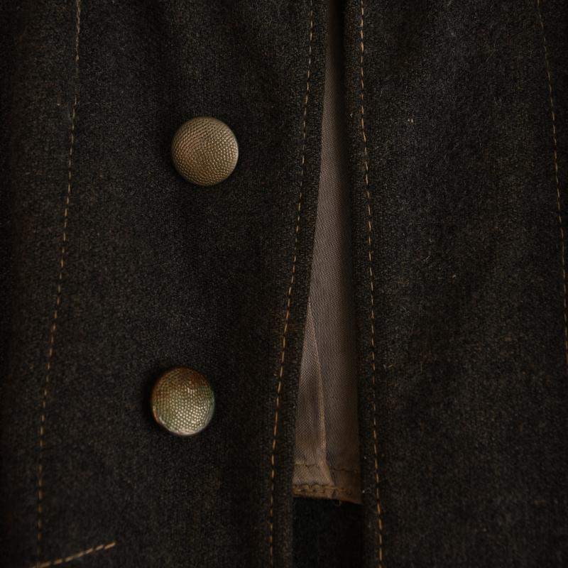 A good medium size example of the flieger bluse worn by a Gefreiter in the Luftwaffe. Standard Luftwaffe blue grey with some nicks to the material, very minor moth nips, thin nap to the cloth overall, some minor shredding to the upper inner collar area of the rayon skeleton lining. Yellow wool piped shoulder boards with yellow backed collar patches with the single gull attached. The original Luftwaffe grey on Luftwaffe blue eagle attached with its original cross hatched weave stitching. Two lower pockets with flaps. The lower cuffs have been converted from adjustable to non-adjustable, this was a fashion at the time to make the lower part of the cuffs a snugger fit. One small patch to the right hand sleeve on the inner seam, another larger patch in the similar area to the opposite sleeve, obviously the tunic wearer used his elbows a lot on the desk and consequently wore the tunic through in those areas. Faint visible remains of an RB number to the upper right hand interior rayon pocket and evidence of considerable wear to the tunic lining itself. Bandage pocket still intact. A nice combat worn tunic, great for a mannequin.