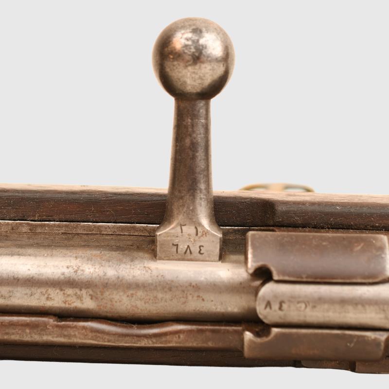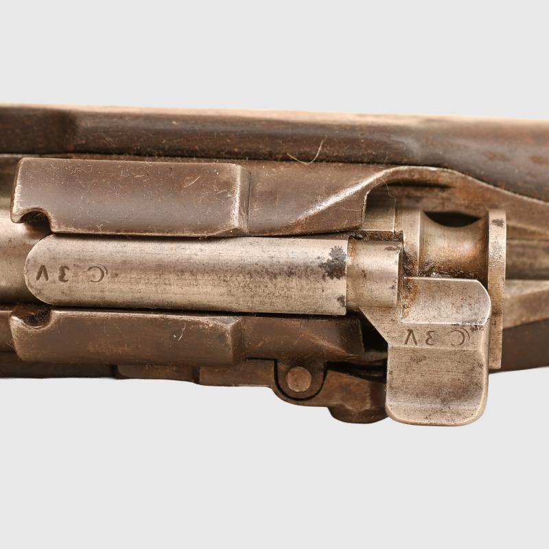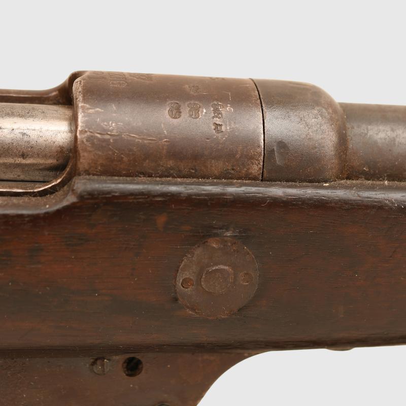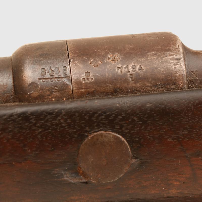 A very nice condition service used Mauser GEW 88 bolt action rifle, complete with its original carrying strap. Generally good condition wood with just minor abrasions. Multiple Imperial acceptance stamps to wood stock, marked ‘Danzig 1891’ with various other acceptance stamps including some Turkish markings.and some mismatched numbering. Complete with its cleaning rod. The weapon is de-activated to UK standards with its de-activation certificate, however we cannot offer it for sale within the UK and any export markets need to check their own internal regulations.