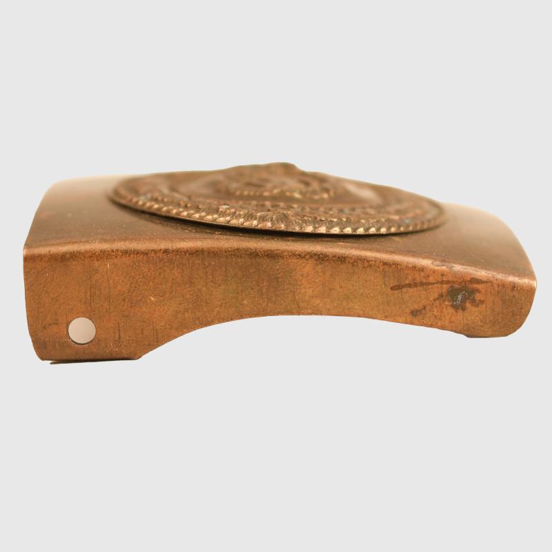 Good brass buckle one-piece, missing its double prong belt fixing system.
