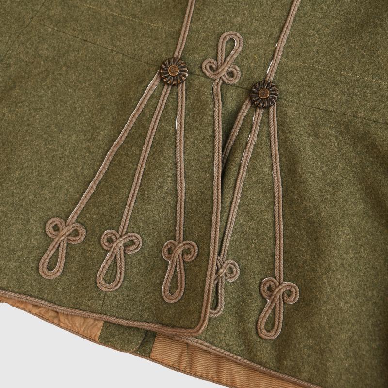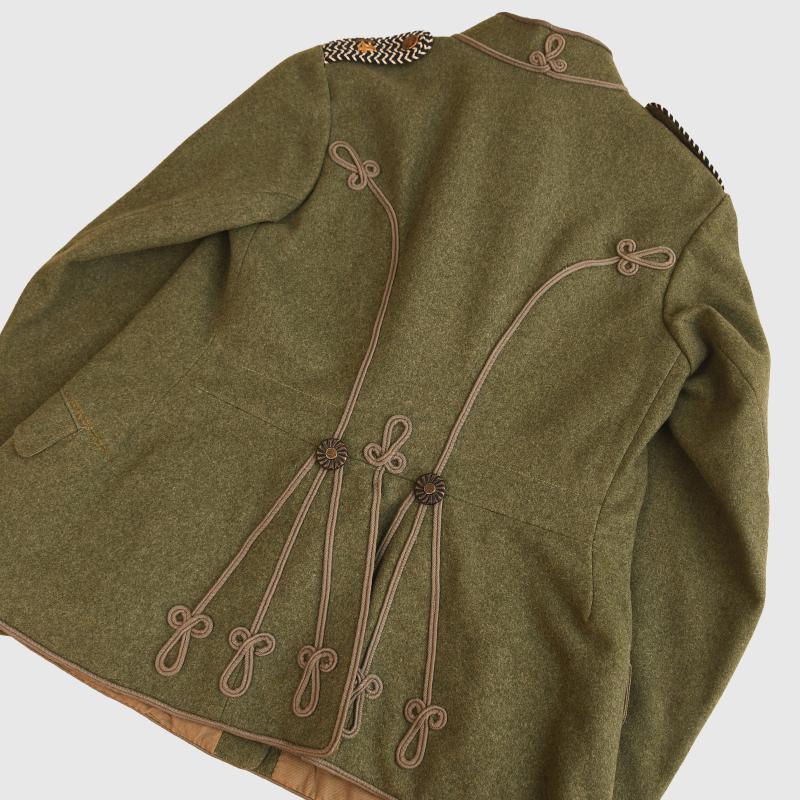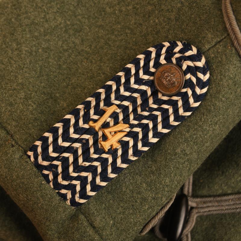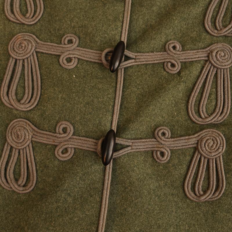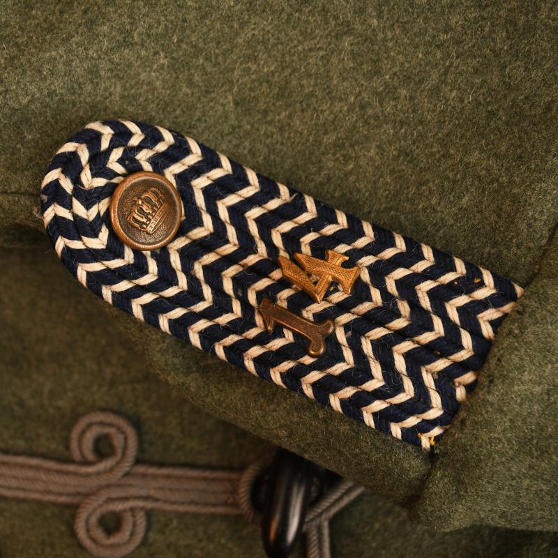 A fabulous condition Prussian 14th Hussars Atilla, originally purchased by Regimentals from Marshall Daut and was included in our book Field Grey Uniforms & Imperial German Army 1907 to 1918 on page 173. This is a textbook example of an enlisted mans depot issued field grey Hussar tunic, known as the Atilla. Standard field grey heavy duty cloth with field grey lace. The tunic has all its correct closure olives, no moth anywhere on the tunic. Standard configuration of two lower angled pockets with plain dome buttons. The blue and white intertwined lace epaulettes with regimental number ‘14’ attached, Prussian buttons securing the epaulettes. In one of the lower pockets it a plastic container holding two company numbered buttons for Company No.2. With the tunic is the original label from the Marshall Daut collection identifying the tunic as number 172 in his collection. To the interior it has the largest regimental marking we have ever seen, initially at the top of the lining the army corps marking of ‘B.A.X.’ ( Army Corps 10) size stampings and a very large block ‘H.14’. Collectors will remember that in the early 2000,s we purchased the complete collection of Marshall Daut from Pheonix Arizona and whilst in our possession we produced the aforementioned field grey uniform book, authored by Michael Baldwin and Malcolm Fisher. A fabulous tunic. More extensive, extra images can be seen on our new Premium website, type in regimentalsmilitaria.co.uk in to your web browser.