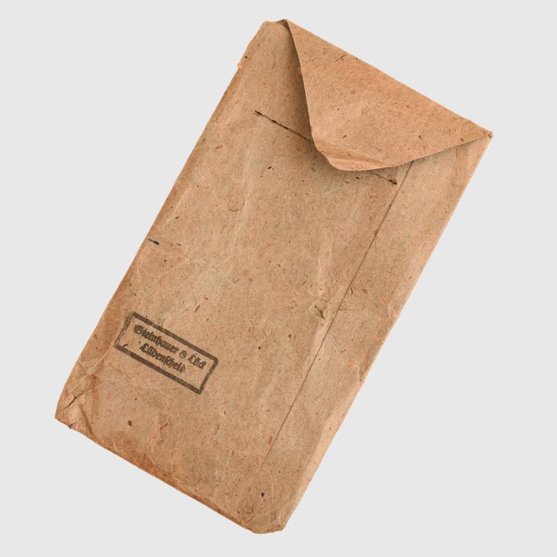 A mint condition solid construction Wound Badge in silver. Slight age spotting visible through the silvering on the face side, in its original titled packet, maker marked ‘Steinhauer & Luck of Ludenscheid.