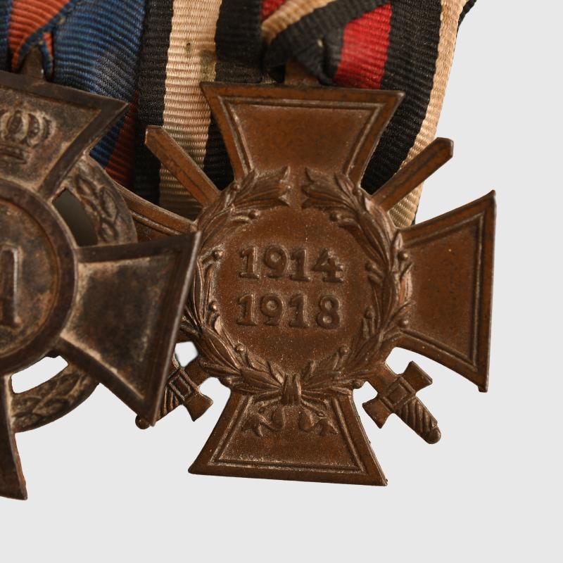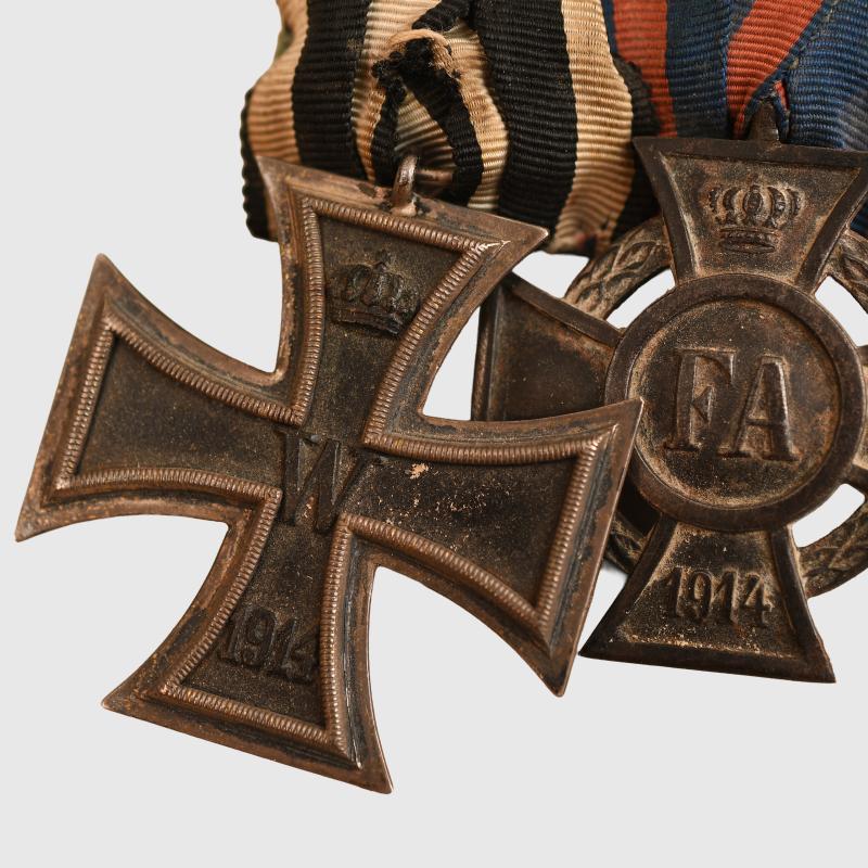 A mounted trio consisting of the 1914 Iron Cross 2nd class, the 1914 Friedrich August medal and the Third Reich awarded 1914-18 War Honour Cross with swords.