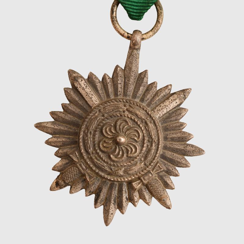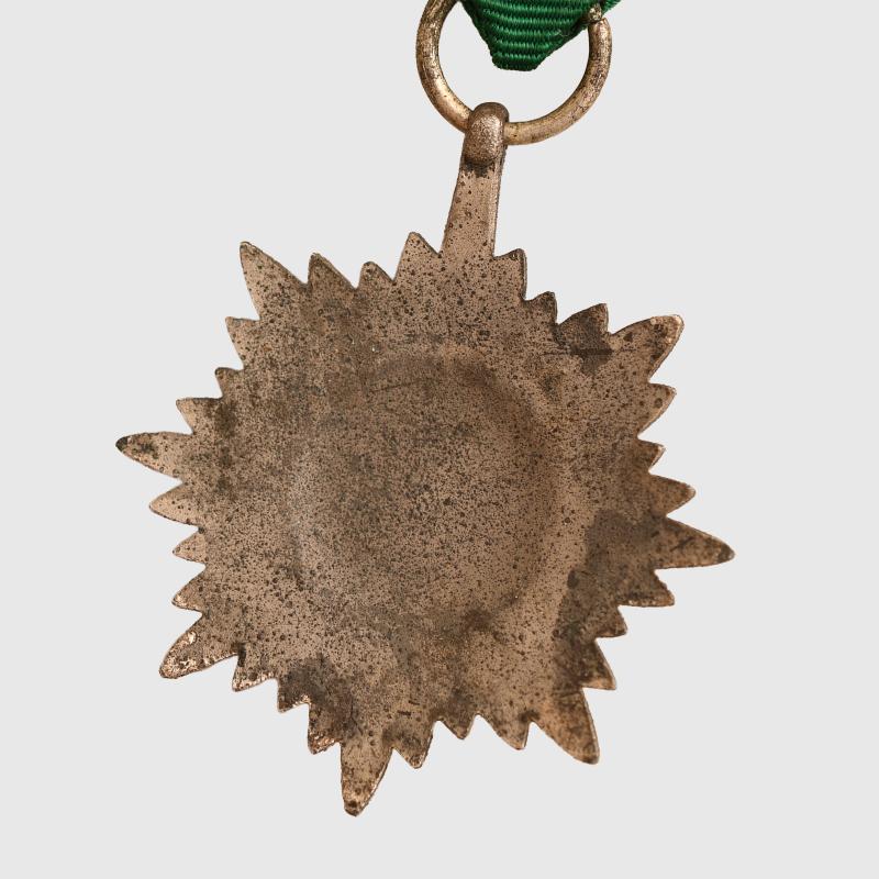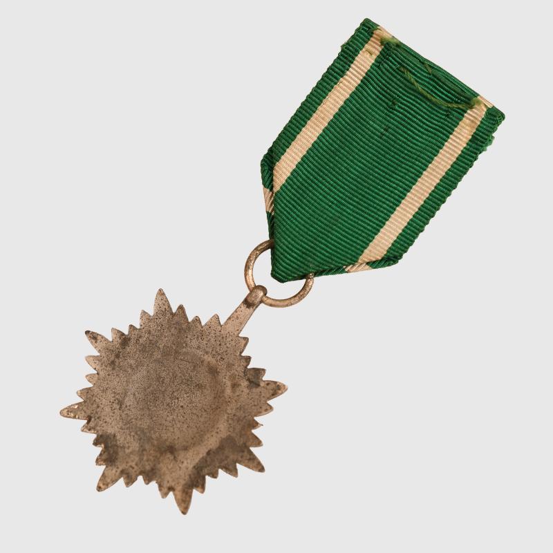 Some slight toning to the silvered finish of the award, complete with its green and white ribbon.