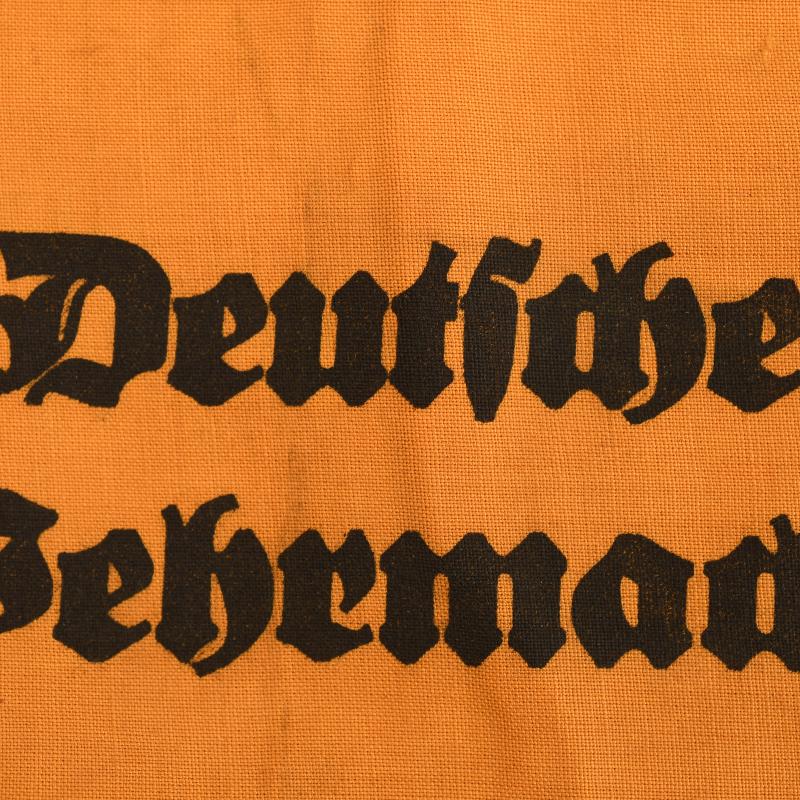 The armband worn by civilians in the employ of the German Army, black printed ‘Deutsche Wehrmacht’ on yellow field.