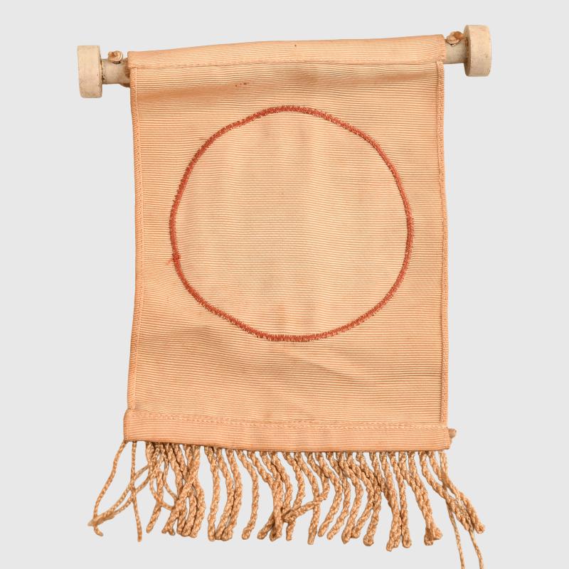 A small desk pennant measuring 18 x 12cm, single sided, a printed image insignia in circular form stitched to a backing section of flag cloth being the insignia of the Dutch National Socialist Women’s Organisation the NSVO. Excellent condition.