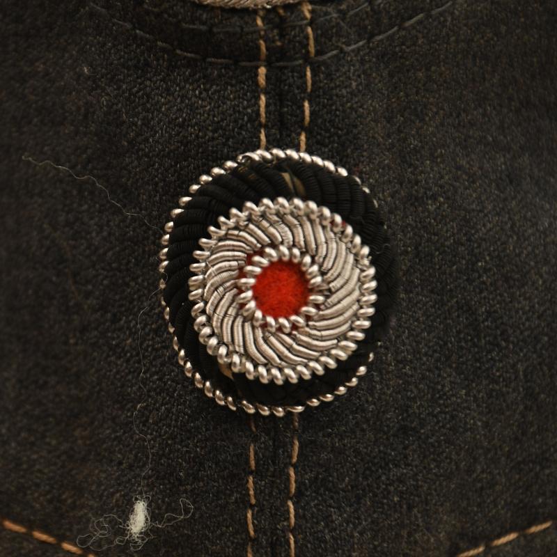 A good large size, possibly 57 Luftwaffe officers overseas cap with a full compliment of officers insignia. It is very difficult to obtain an officers overseas cap with its correct bullion wire insignia. Standard cap that originally had a huge amount of nap to the cloth, when dropping down the side scallops of the cap the original nap can be seen, the exterior that is visible is all smooth. Silver wire cording to the scallop of the cap with its matched set of bullion eagle and national cockade. The interior blue rayon lining shows signs of wear use but no abusing, staining or moth damage. More extensive, extra images can be seen on our new Premium website, type in regimentalsmilitaria.co.uk in to your web browser.