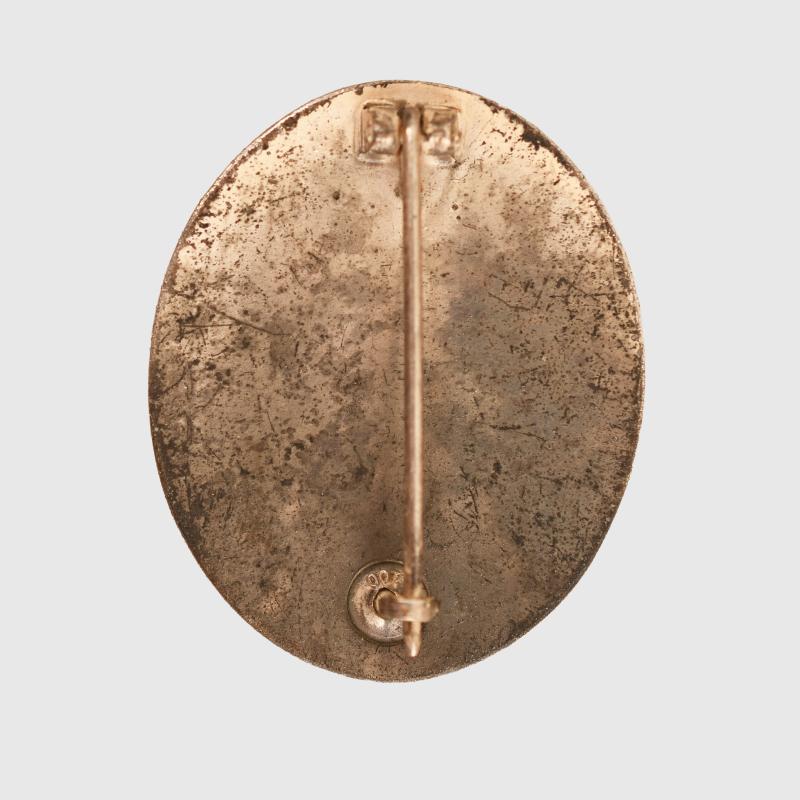 A late war zinc example by a scarce maker, silver finish on the back starting to turn to a grey colour but with an attractive dark patina . round pin, maker marked on base of hook 100 being the maker of Rudolf Wachter.