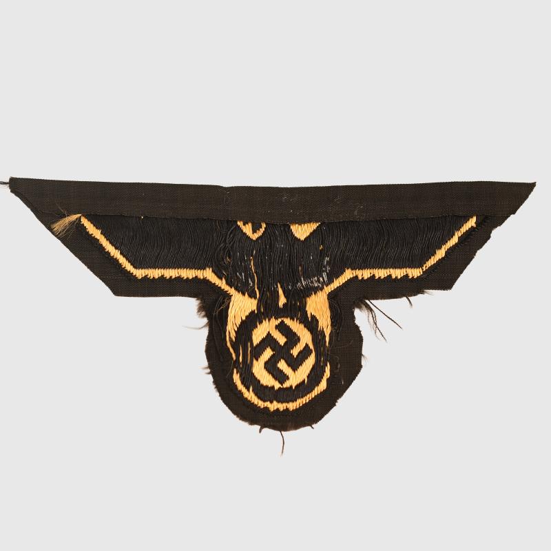 The gold on black Bevo woven arm eagle with eagle looking to the left.