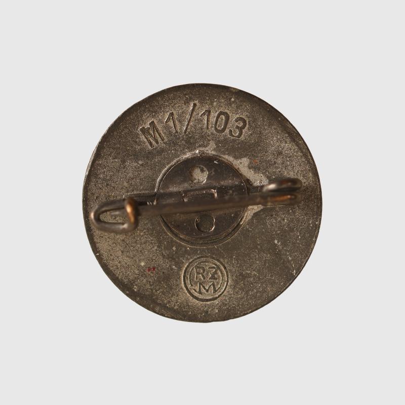 A nice condition non-enamelled NSDAP party badge, with all the paint remaining, marked in raised relief on the reverse side RZM within a double circle, M1/103, with its tinny type fixing pin.