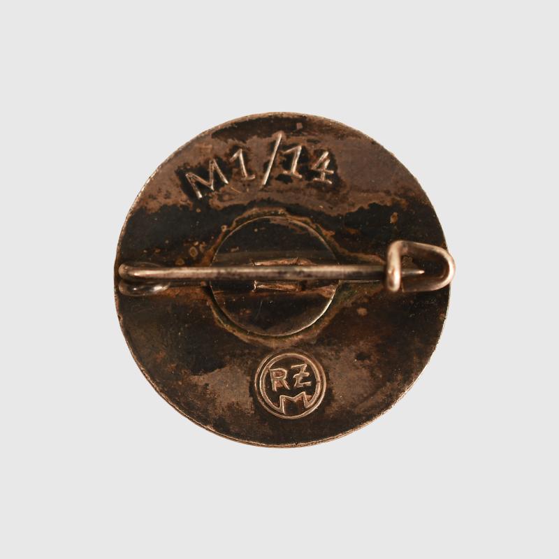 A very nice condition party badge, untouched enamels, marked in raised relief on the reverse side RZM within a double circle, M1/14, with its tinny type fixing.