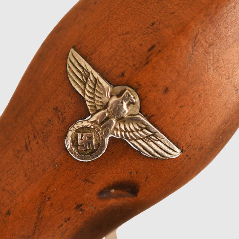 Nice clean full-length blade with all cross grain finish remaining, faint remains of the EP & S trademark, grinding on the central ridge on the reverse side to remove the Ernst Rohm inscription is evident, an unusual very much lighter wood grip than normally encountered, undamaged SA inset high quality national eagle, one indentation to the wood grip, upper grip mount loose on grip, with its early anodised scabbard, which has lost the majority of its anodising, both scabbard fittings good with all screws intact. More extensive, extra images can be seen on our new Premium website, type in regimentalsmilitaria.co.uk in to your web browser.