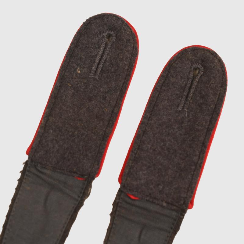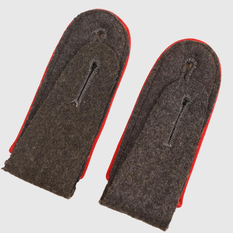 A mint unissued pair of slip-on Luftwaffe Flak Artillery shoulder boards for an enlisted man. Red silk piped, Luftwaffe blue grey centred.