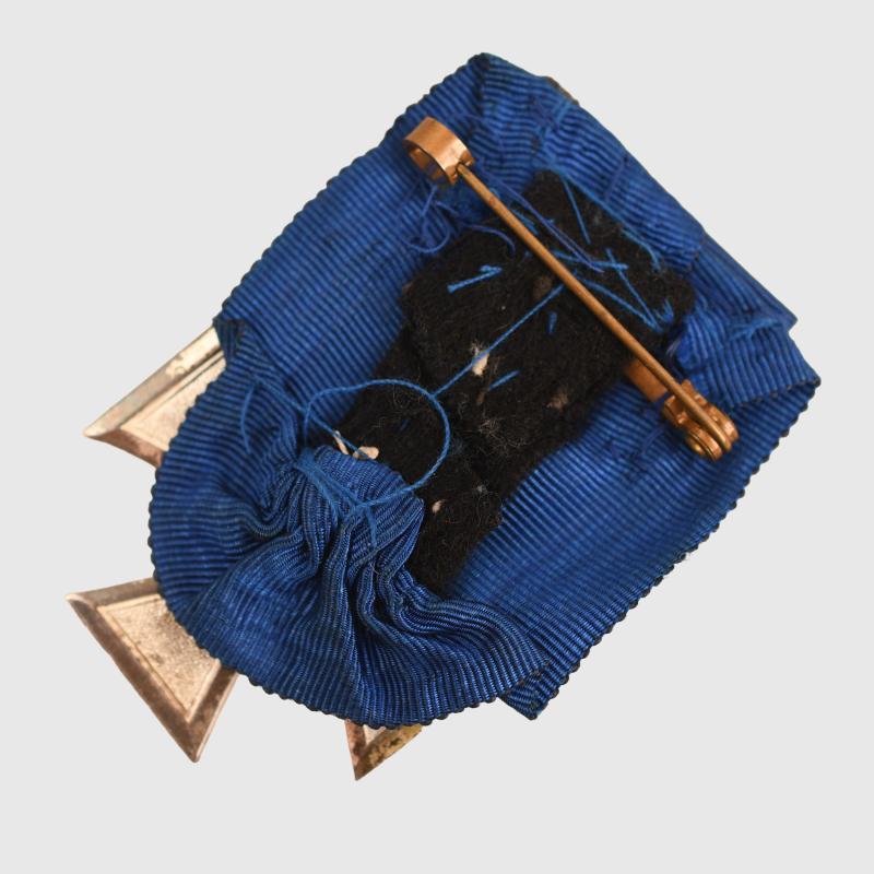 A very nice court mounted police 18 year, long service medal. All silver finish remaining to the medal, with its separately attached embroidered police insignia, court mounted with its pin back suspension.