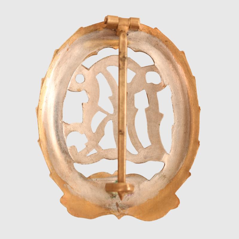 Gold wreath with silver DRL lettering. Very nice quality. Non maker marked.