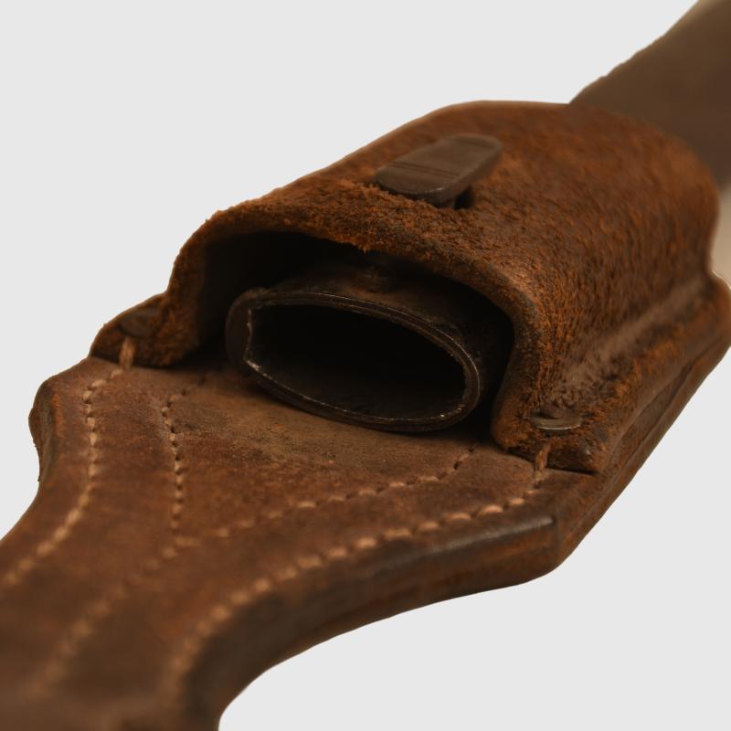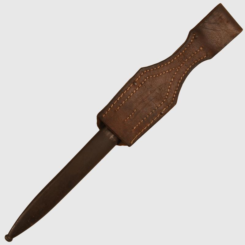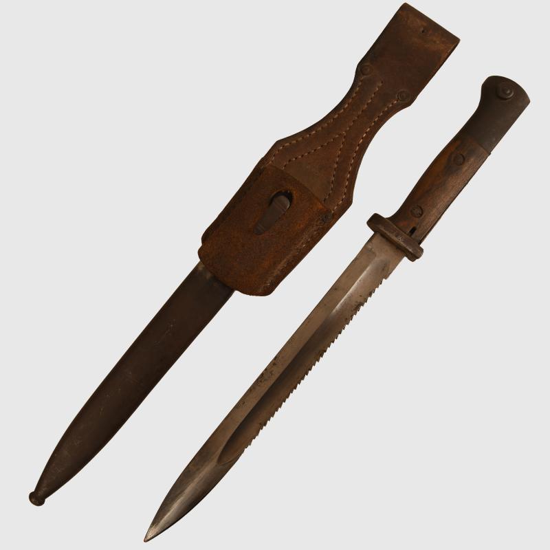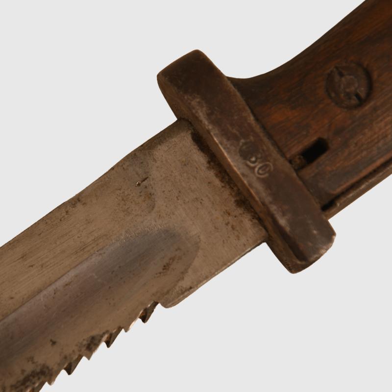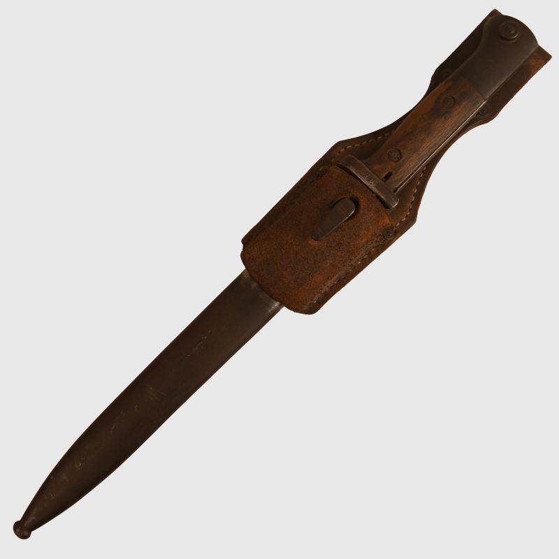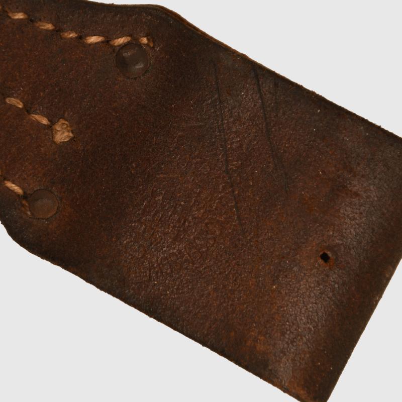 A very fine example of the scarce saw back K.98 bayonet. Maker marked ‘Gottlieb Hammesfahr, Solingen’. A nice clear Imperial acceptance stamp on the flat back section of the blade. The lower cross guard of the bayonet is number stamped ‘430’. Wood grips undamaged. Imperial acceptance stamp just above the rifle retaining button, which is stiff. Fitted into its original scabbard and a very nice condition mid tan leather frog, which is Nuremberg maker marked to the upper loop part with a crown over roman numeral ‘III’ at the lower part of the frog, also the numbers ‘159’. The crown over the roman numeral III maybe the Bavarian Army Corps marking. This was recently discovered in Bavarian. More extensive, extra images can be seen on our new Premium website, type in regimentalsmilitaria.co.uk in to your web browser. The sale of Knives, other Edged Weapons and Firearms are restricted to those aged over 18. Verification of age is required before purchase is concluded, this will include providing a scan of photo ID including your address and in some cases may require video verification by FaceTime or WhatsApp video, at Regimentals discretion, until formal laws on this requirement are enforced in the UK.