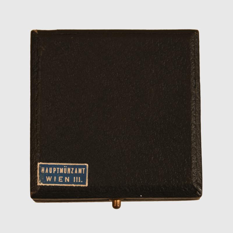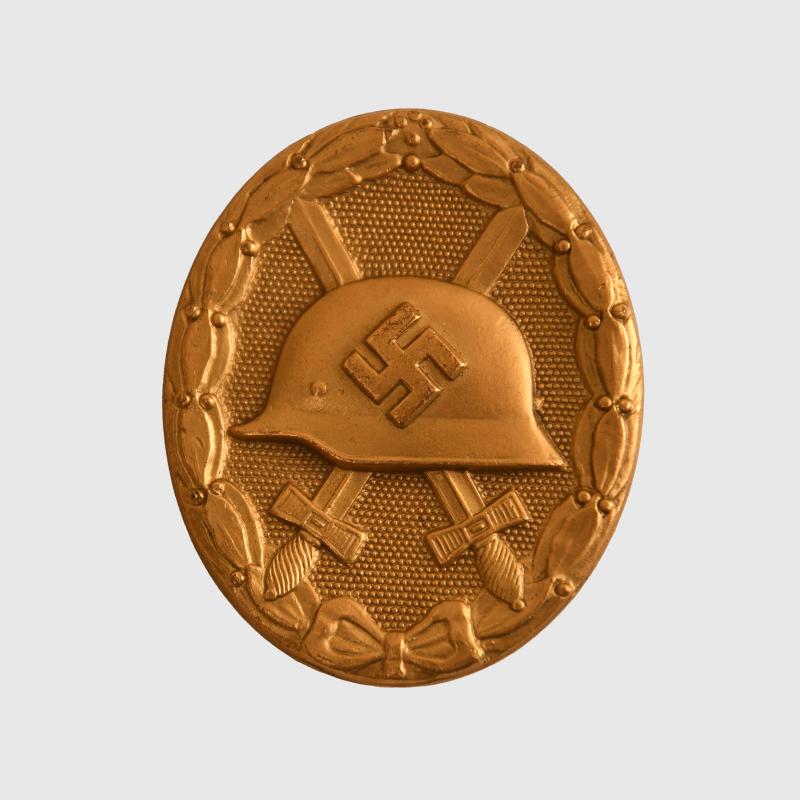 A superb quality heavy construction non maker marked example of the Wound Badge in gold. All mint bright gilt with its original pin, hook and hinge. Fitted into its original presentation case, slight age foxing to the flock base to the box. Maker label on the reverse side of ‘Hauptmunzant Wein’.