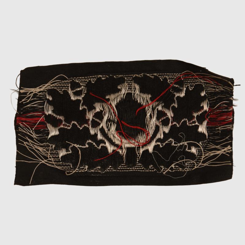 An ultra rare piece of insignia being the panzer beret wreath but for an officer with silver Bevo wire on black backing. We have never actually had one of these previously.