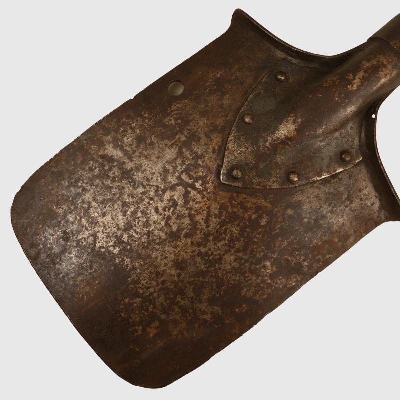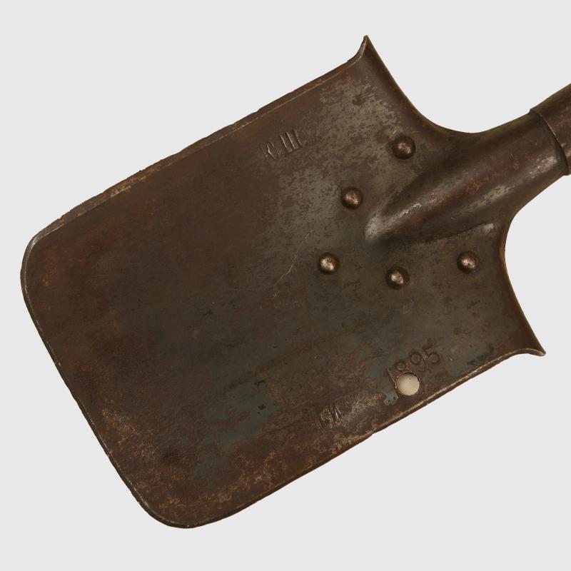 A very nice condition 1895 dated entrenching tool, which is marked ‘K.III’ with twin letters ‘LM’. A drilled hole through one part of the tool head. Excellent wood haft. Fitted into its original German brown leather entrenching tool cover, of which the stitching is all strong, one of the loops appears to have had a period replacement with re-issue marks of ‘SA’ within a rectangle to the Finnish Forces.