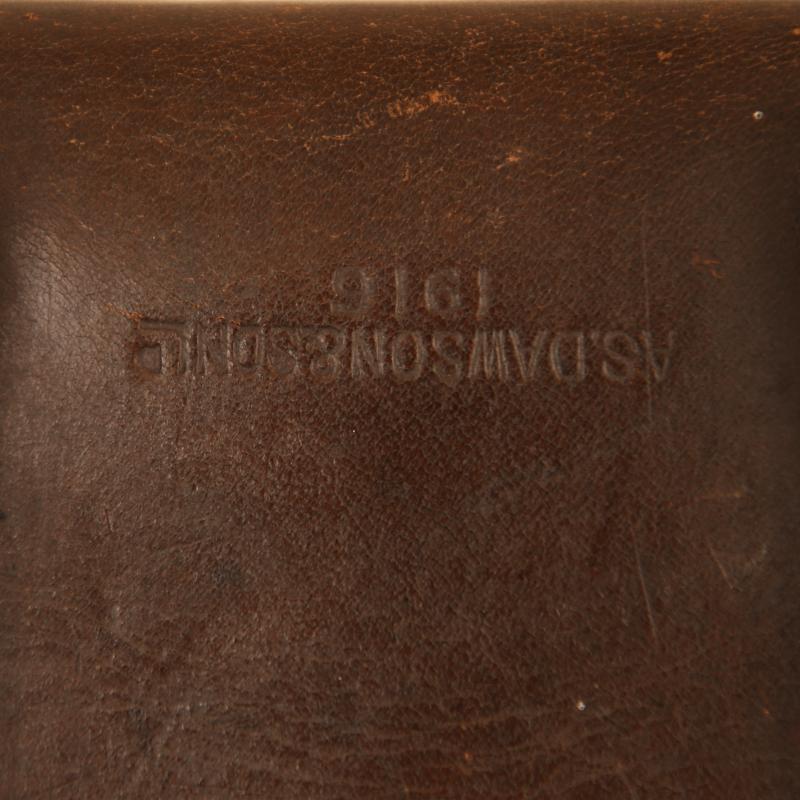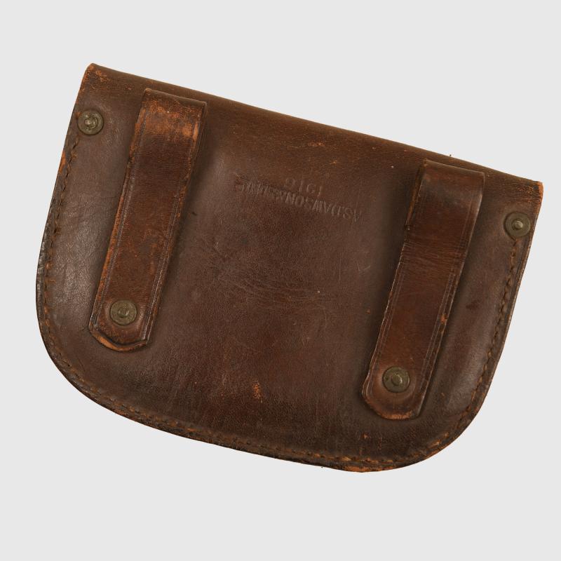 A very nice condition soft and supple strongly stitched belt pouch for ammunition for the Webley service revolver. Maker marked ‘A.G.Dawson & Sons Limited, 1916’ with the extra space to the front for a further six rounds.