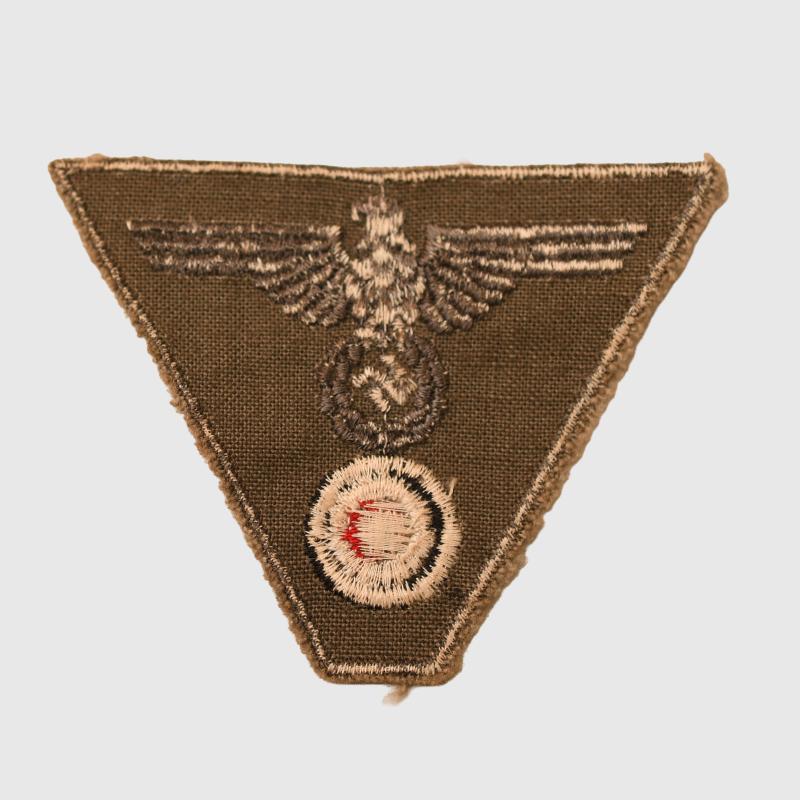 The one-piece triangular form machine embroidered grey on grey insignia with the national coloured roundel below for the late war M.43 cap.
