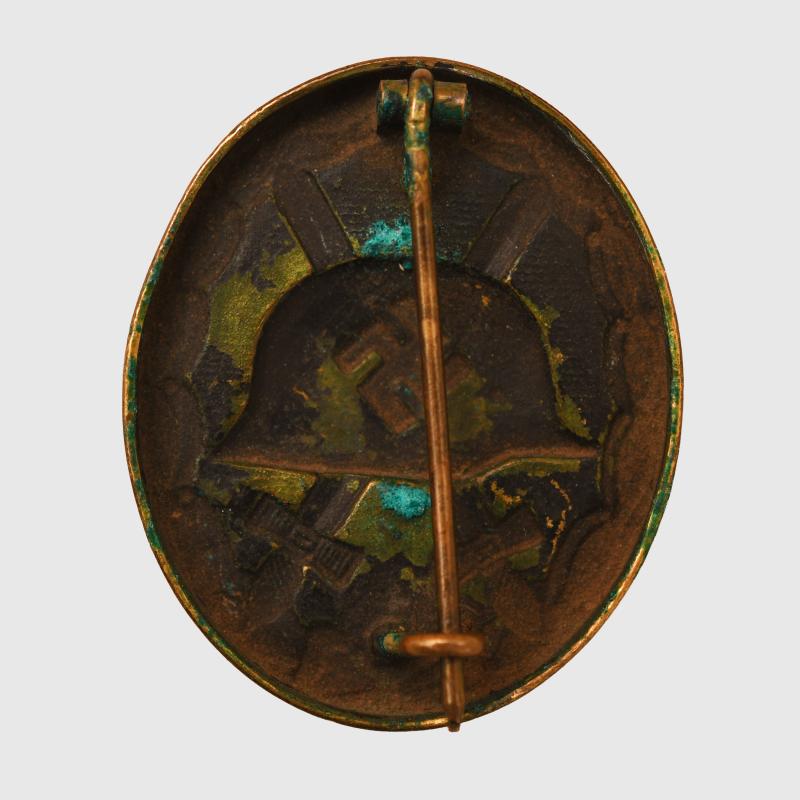 GERMAN WWII WOUND BADGE IN BLACK CONSTRUCTED IN BRASS. AS REMOVED FROM A SOUVENIR BELT.