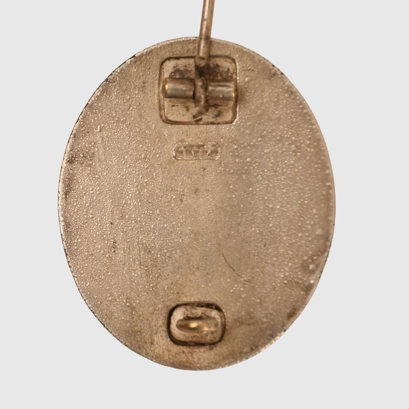 A very nice solid construction Wound Badge in silver, marked number ‘107’ within a block on the reverse side, having its original pin, hook and hinge. Excellent depth of detail.