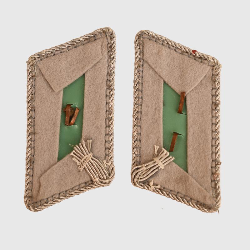 A nice set of light grey wool collar patches, silver edged with red enamelled crosses to the centre.
