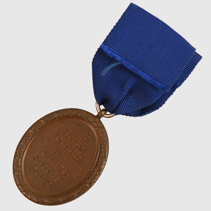 An excellent example, all bronze finish remaining, complete with blue silk ribbon.