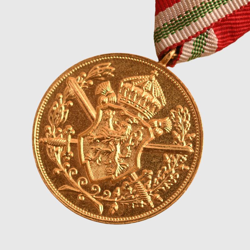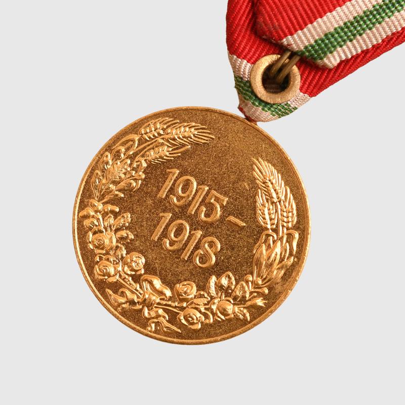 A nice condition 1915/18 Bulgarian Service medal with its red, white and green ribbon in Austrian wrap style. Awarded to Bulgarian citizens, Germans and Austrians.