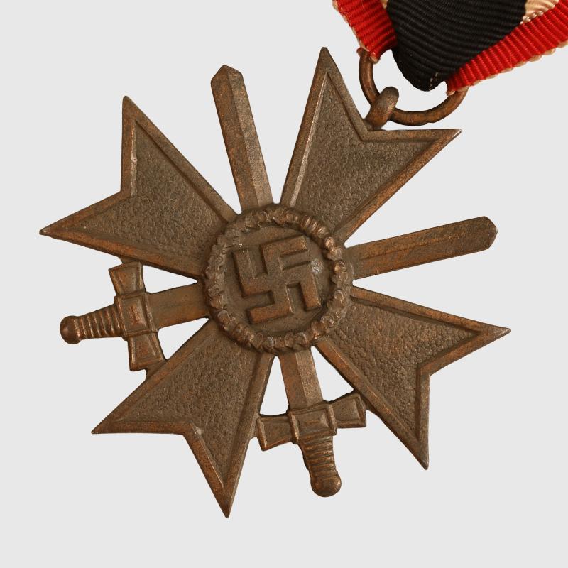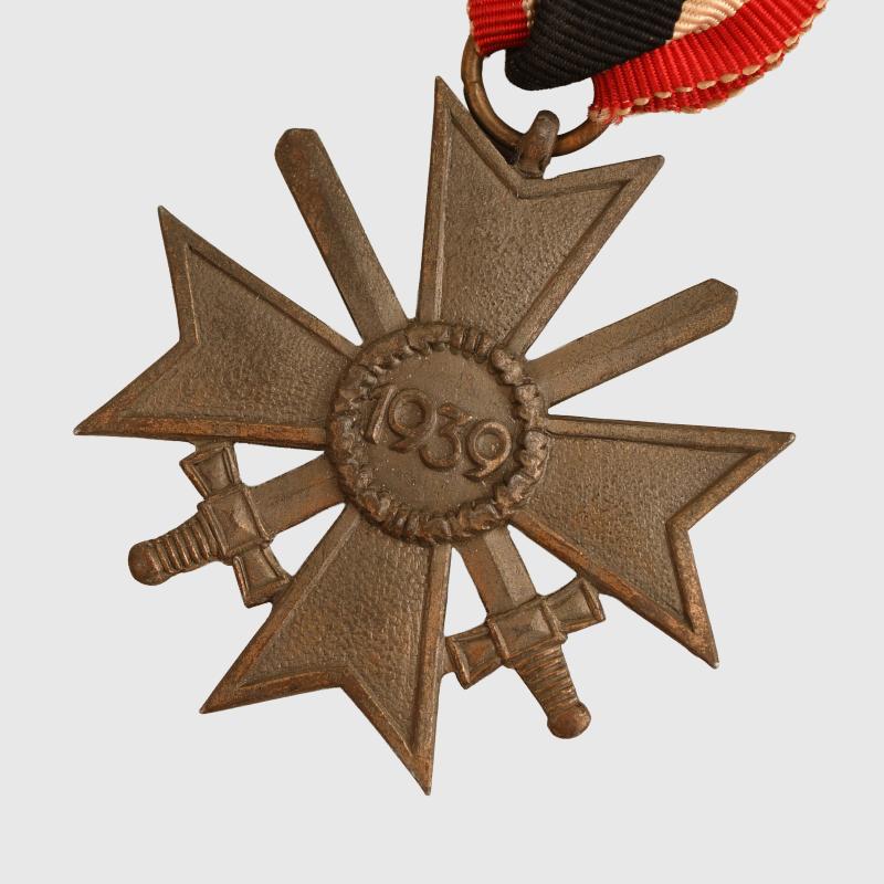 Award retains at least 70% of its original bronze finish, with its section of red, white and black ribbon.