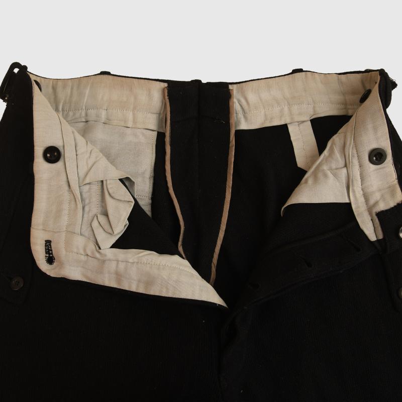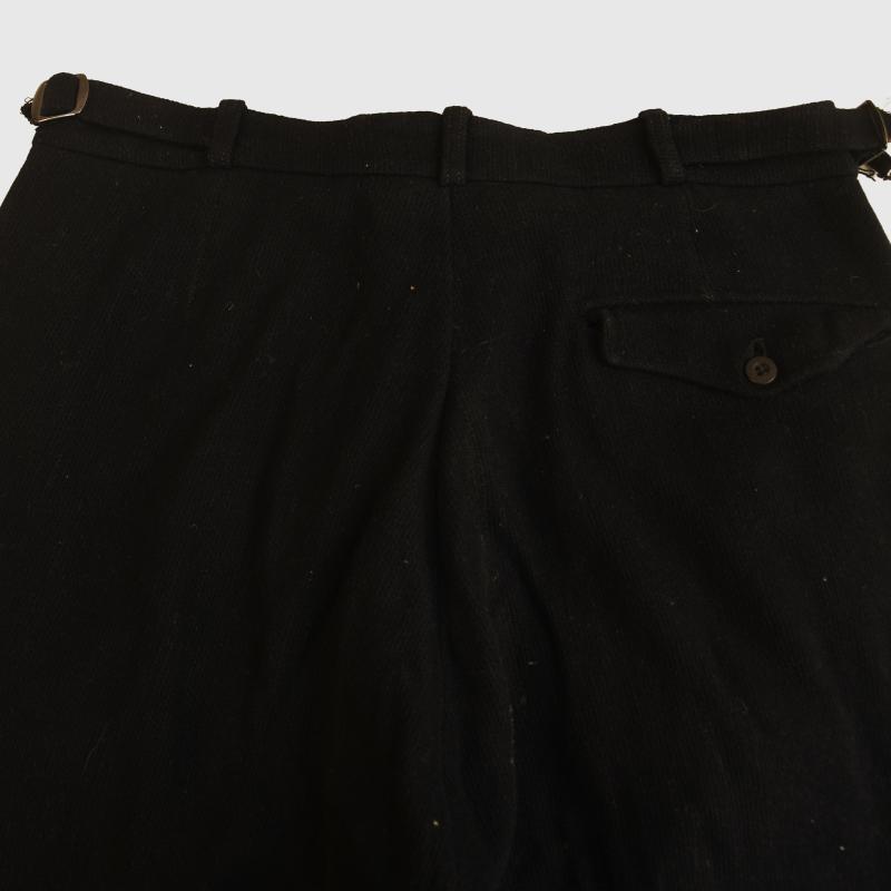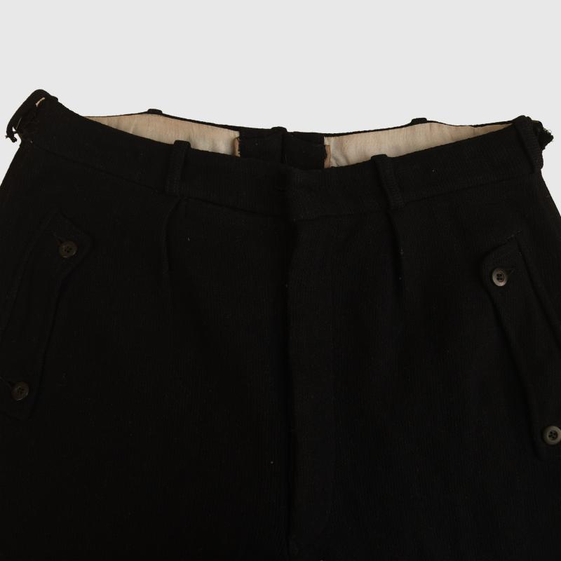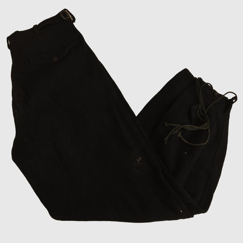The long blouse trousers in black with twin button pocket flaps. Excellent condition, no moth damage at all, very long legs, 80cm waistband. The Hitler Youth ski trousers are so similar to panzer trousers that a collector wishing to dress a mannequin for a panzer enlisted man in black could easily utilise these trousers.