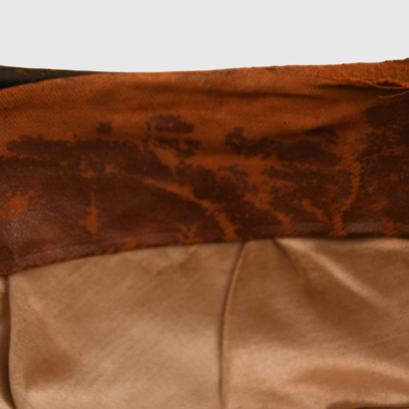 A good form to the headdress complete with its red, white and black Reich colour cockade in silk with its large Reichsmarine crown over anchor button. Gold silver bullion weave. The basic beaver covering to the hat is good with some shredding to the silk trim. The interior leather liner all complete with its silk inner liner.