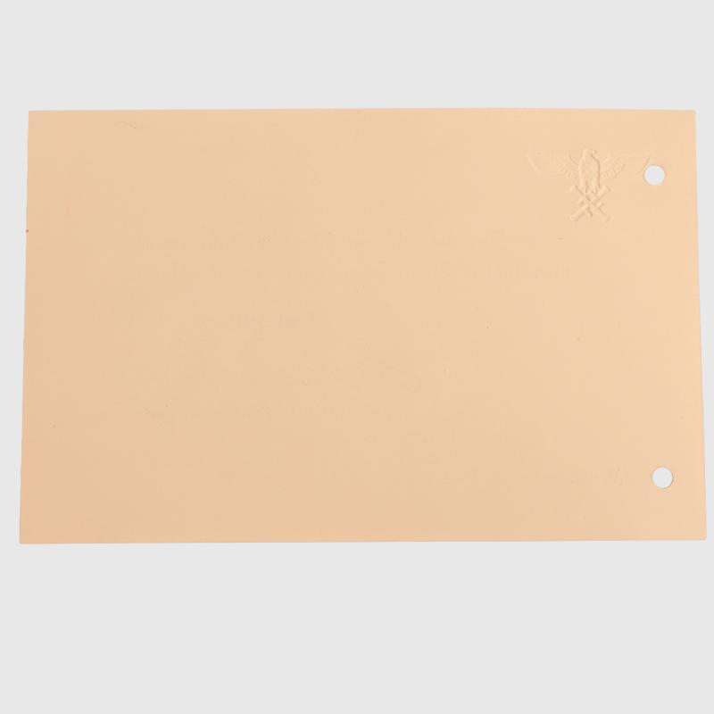 Measuring 18 cm x 11 cm, punch holed for filing, a printed card thanking the recipient for all they have done during the course of the year with the facsimile signature of Herman Goering dated Berlin in January 1942, to the upper right hand side of the card is the impressed from the reverse side Reich eagle with the Herman Goering cross marshals batons, , a small red smudge to the right-hand side of card.