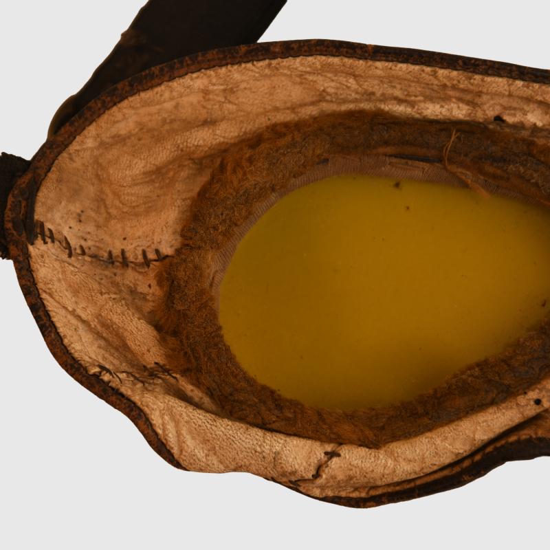 Tinted lenses, large leather surround with soft interior with its elasticated neck strap.