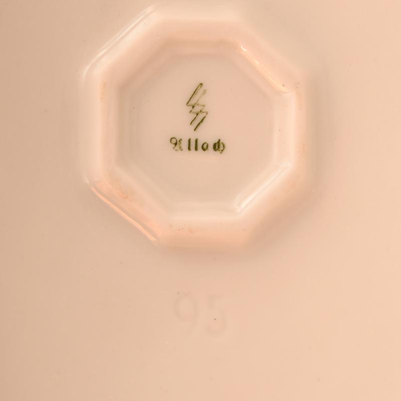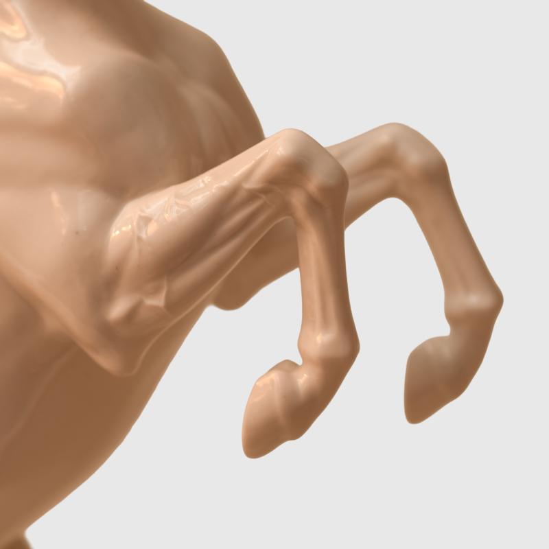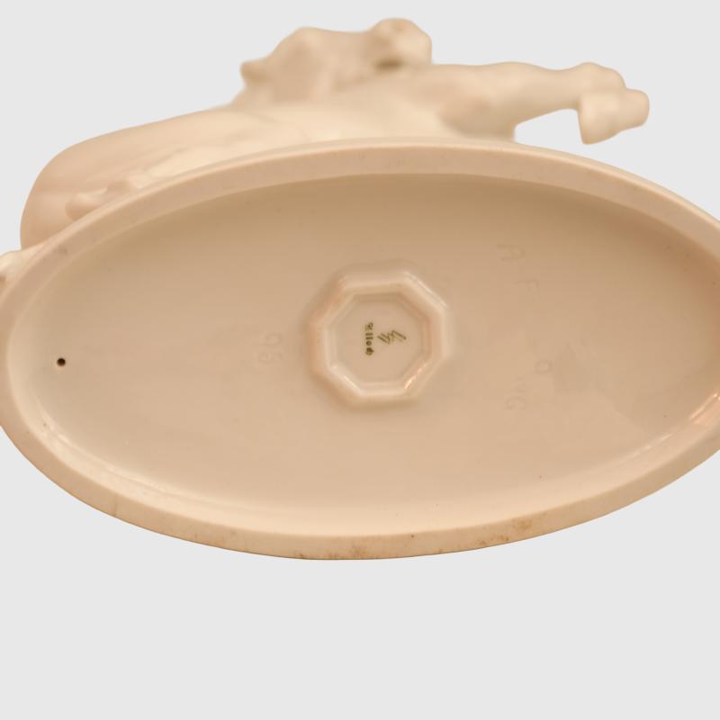 A fabulous example from our own collection of the pure white Allach rearing horse, model number 95 designed by Adolf Rohring. 28cm in height, this beautiful prancing horse manufactured at the Allach works on the outskirts of the town of Dachau. The porcelain works was put together by Heinrich Himmler’s SS concentrating the finest artisans in porcelain in one place and producing many beautiful pieces in military figurines and in animals. This piece perfect, no damage to the ears or any other part of the rearing horse. The figure of a rearing horse was produced by a other porcelain manufacturer of the period, when compared to the Allach example there is absolutely no comparison in quality, style and impression.
