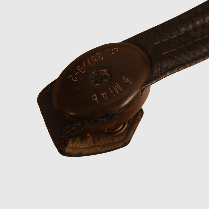 The net type material, which is quite often broken or torn, is all complete. The side contrasting light tan eyepieces all in position, however the earphones to the interior are missing. Complete with its throat microphones and its short type jack plugs for fitting to the aircraft. Complete with its silk woven technical label to the interior with maker code ‘BX0’.