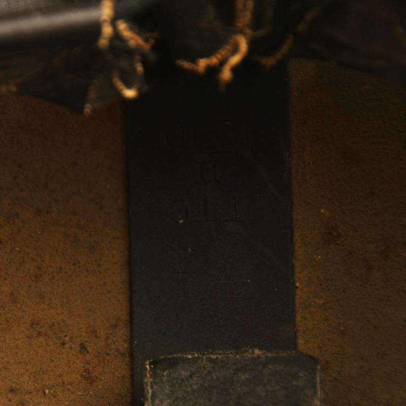 A very nice condition virtually unused condition ‘7¼’ size stamping to the fibre framework, a clear date of ‘1940’ with its unused liner and elasticated canvas chinstrap with its netting cover.