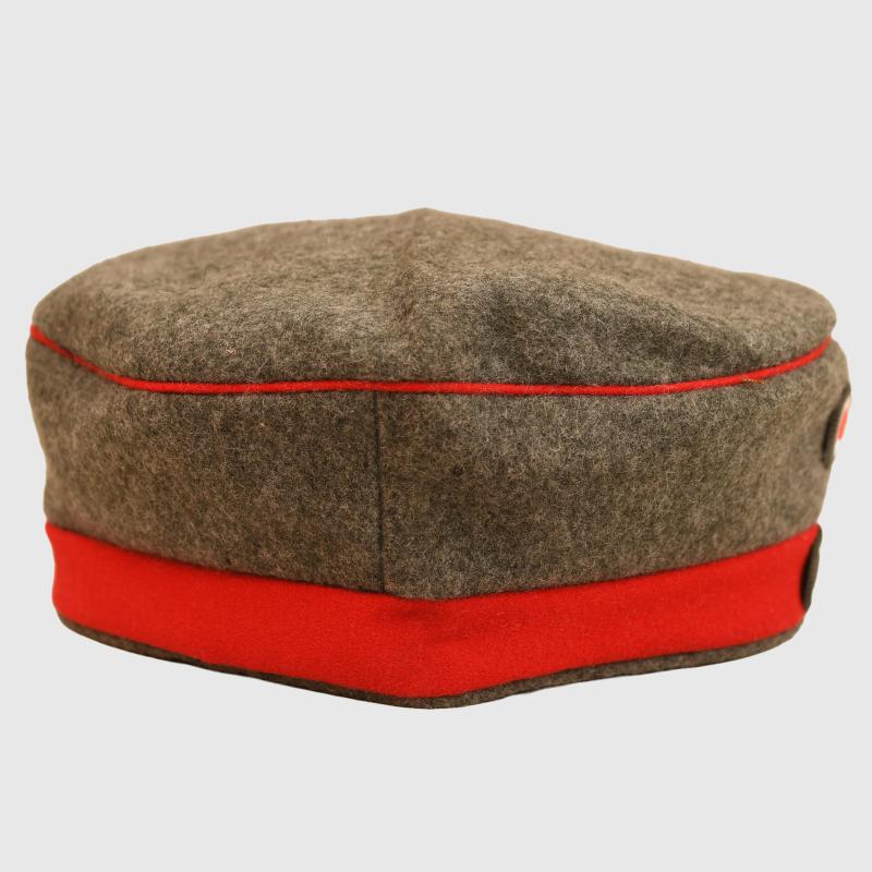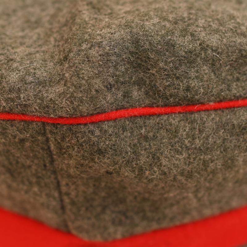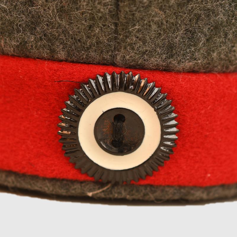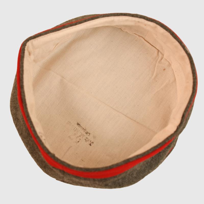 A number of years ago we managed to find a quantity of enlisted ranks feldmutze both Prussian and Wurttemberg, we are down to the very last. This one has all the map of the cloth, still having a central fold mark where it was folded flat. Prussian enlisted ranks cockades, standard field grey material with red band and red waffenfarbe around the crown. Virtually pure white lightweight cotton lining. Marked size ‘53’ ink stamped size ‘57’ in two place, ‘Koblenz’ maker marked.