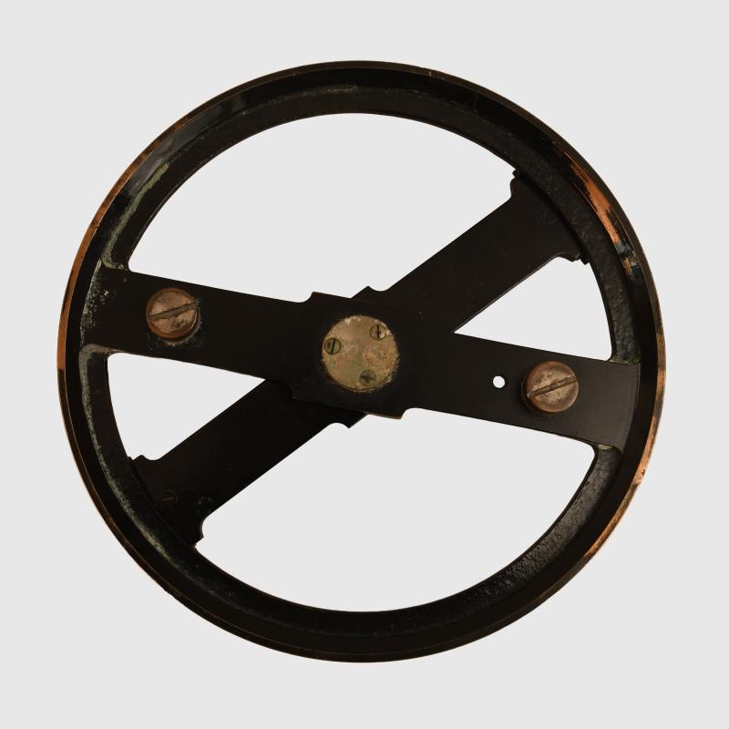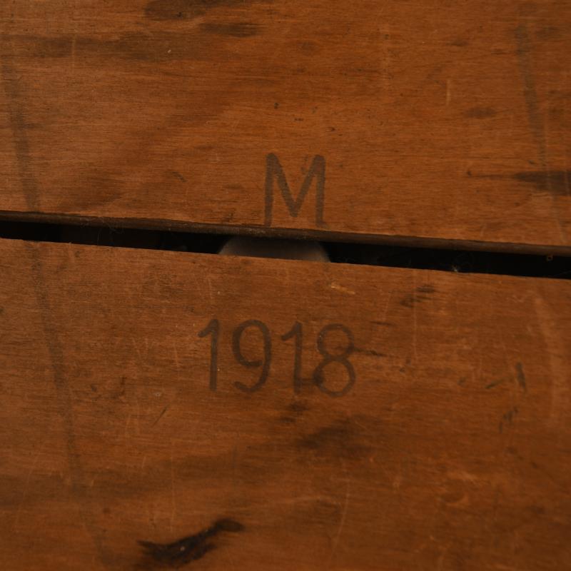 Brass 8 inch calibrated gauge, blacking sighting arm marked ‘F.N.4637’ on the swivel, maker marked ‘Nautische Werkstatten GMBH Kiel’ on the underside of the raised sight, in its original wooden case 8.5 inches x 8.5 inches, stamped lettering to the exterior ‘M 1918’.