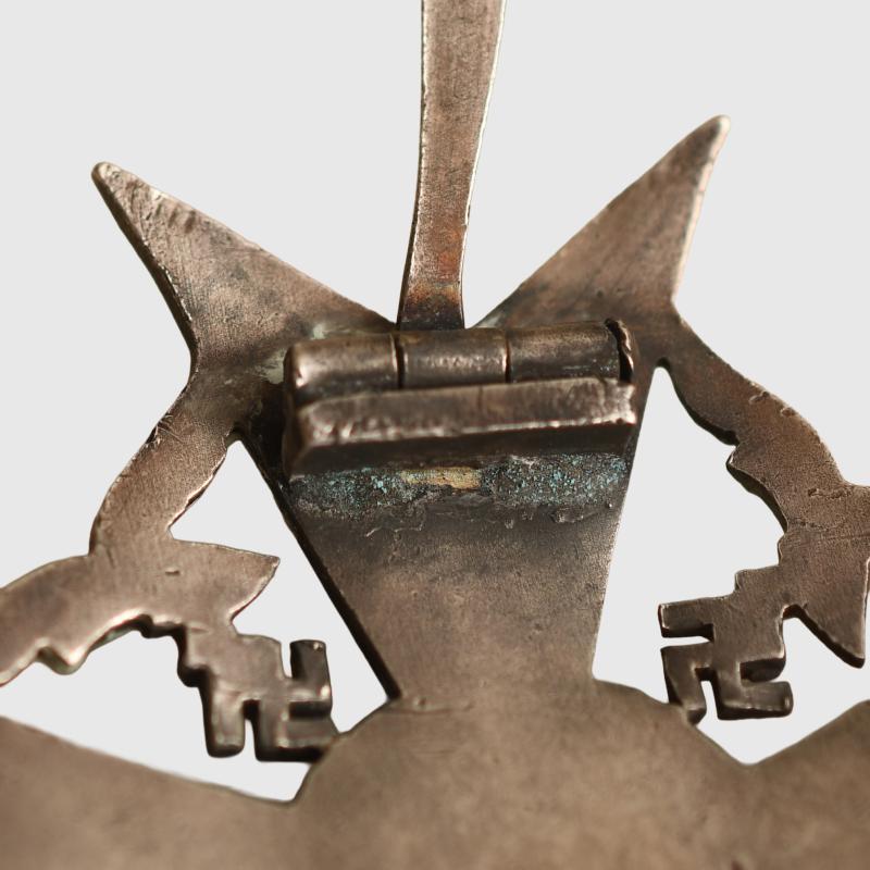 The award in silver without swords was the smallest amount of the series awarded, only 327 were awarded, and studying this award carefully looking at the distorted pin and the overall wear indicate that this is one of those 327 worn in service on a uniform, nice deep convex construction excellent detail to the Luftwaffe Eagle’s residue of some former cleaning material within the arms of the Maltese cross and the inner circlet of the swastika.